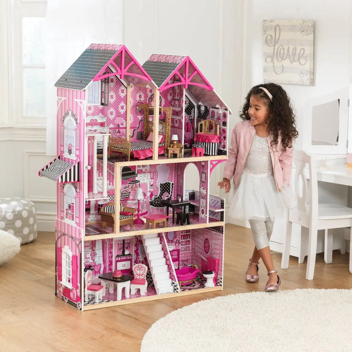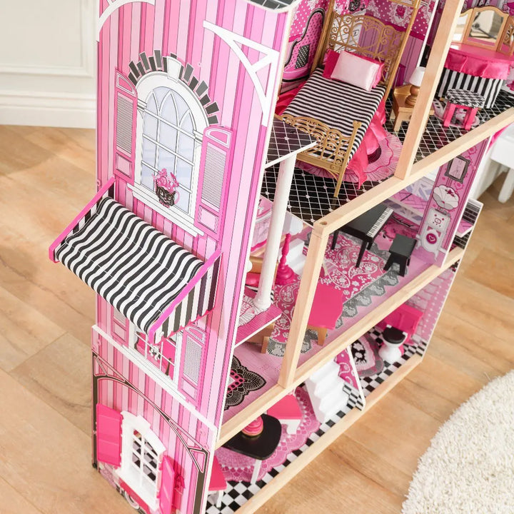 - ثلاثة مستويات وخمس غرف : توفر مساحة كبيرة للدمى لاستكشافها، من المطبخ إلى شرفة الطابق الثاني.