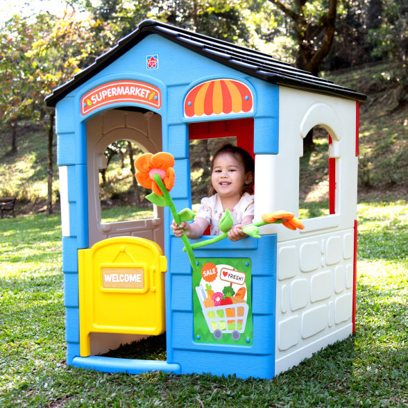 امنح طفلك عالمًا من الخيال في تصميم مدمج واحد. صُمم بيت اللعب All About Happiness™ 4-in-1 للأطفال من عمر سنة ونصف حتى 5 سنوات، ليمنحهم ساعات طويلة من اللعب الإبداعي والتمثيلي سواء داخل المنزل أو خارجه.