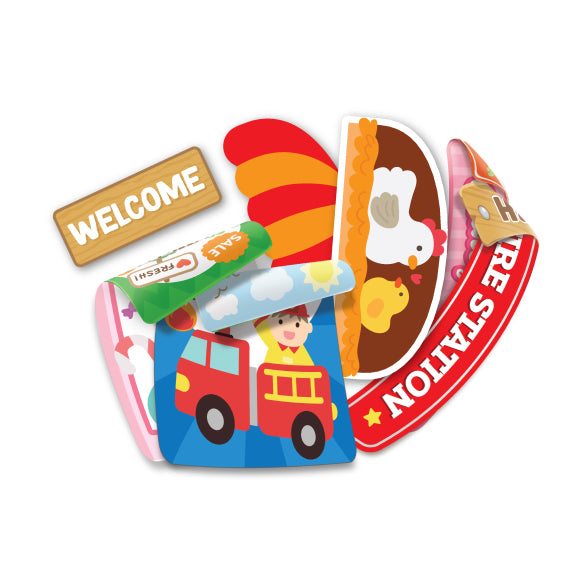 - متعة لعب 4 في 1: بفضل اللوحات والملصقات والواجهات القابلة للتبديل، يتحول البيت فورًا إلى منزل دافئ، متجر حلويات، سوبر ماركت، أو محطة إطفاء. لعبة واحدة بأربع مغامرات مختلفة.