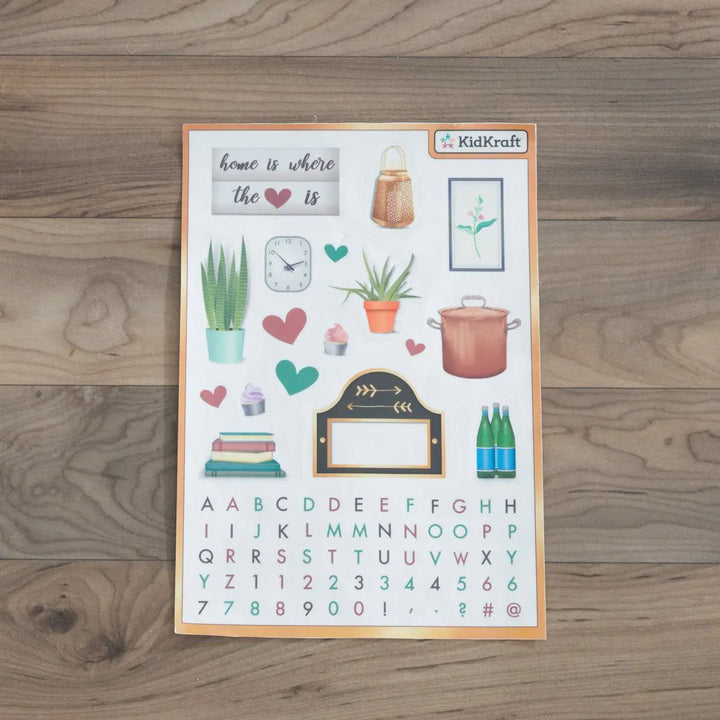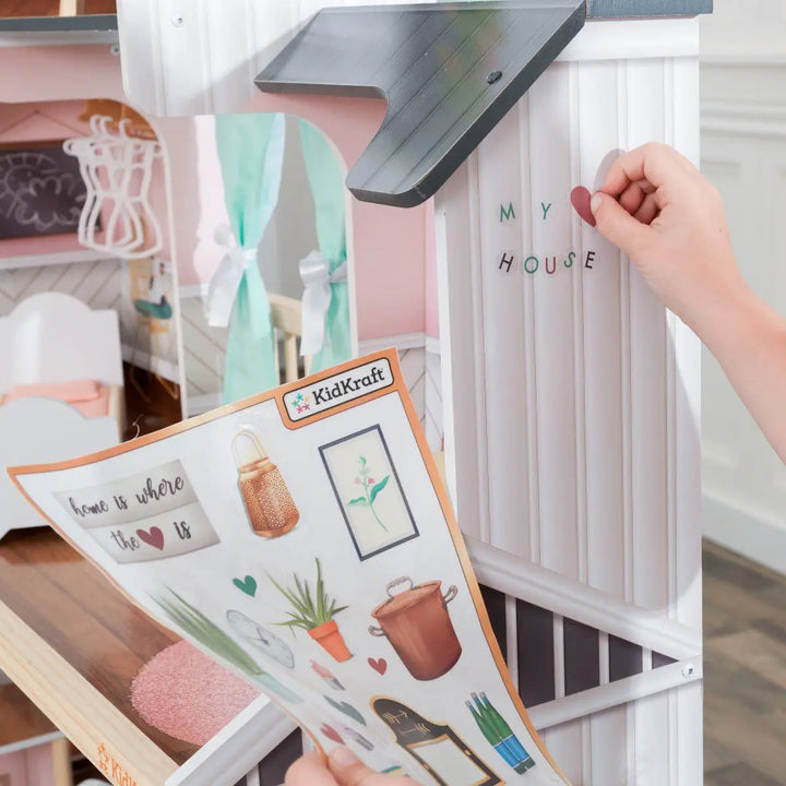 - قابلة للتخصيص : ملصقات ثابتة وخزانة ملابس تتيح لطفلك الفرصة لإضافة لمسته الشخصية إلى بيت الدمية.