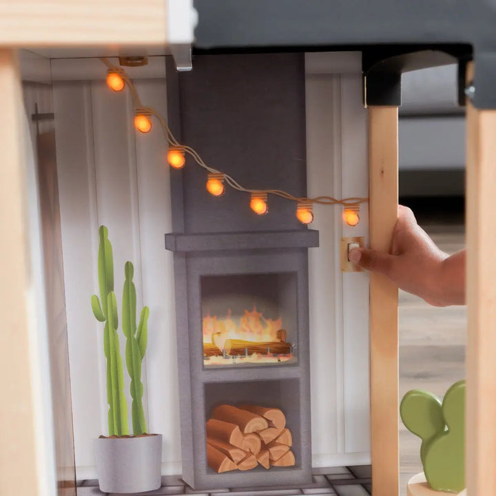 - الميزات التفاعلية : مع مصعد يعمل، ومرحاض تدفق، وثلاجة مضيئة، وأضواء فناء عاملة، يوفر بيت الدمية هذا تجربة لعب غامرة وجذابة.