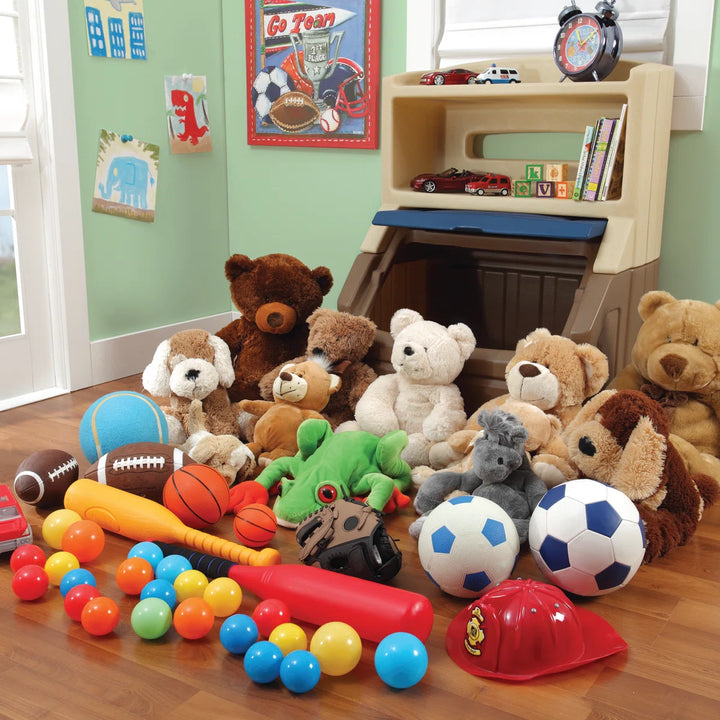 This Step2 Bookcase & Toy Box was designed with safety and convenience in mind and has plenty of room to store toys in! It's the perfect 2-in-1 toy box and bookcase for your youngster’s playroom or bedroom! Children will love cleaning thanks to this toy chest and bookshelf. Made in USA of US and imported parts.