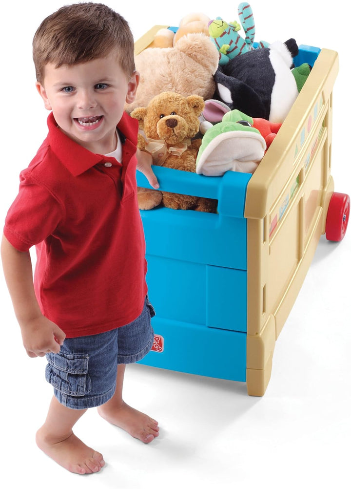 The Lift & Roll Toy Box by Step2 is a toy box on wheels that will get your little ones moving as they clean their room! Kiddos can pull this storage chest around their playroom or bedroom and put toys and books away at the same time. Cleaning will be a blast now with this durable moving toy box. This Easy clean up on the move! Made in USA of US and imported parts.