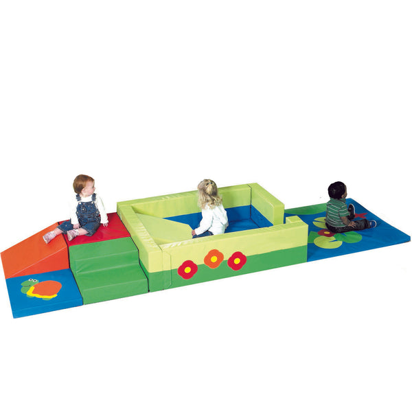 بنية ناعمة وآمنة : مصنوعة من مواد ناعمة ومتينة، توفر Lily Pad Lane بيئة لعب آمنة ومريحة ليستمتع بها الأطفال. يضمن البناء الإسفنجي الناعم تخفيف الصدمات والسقوط، بينما يسمح السطح القابل للتنظيف بالمسح بسهولة الصيانة والتنظيف.