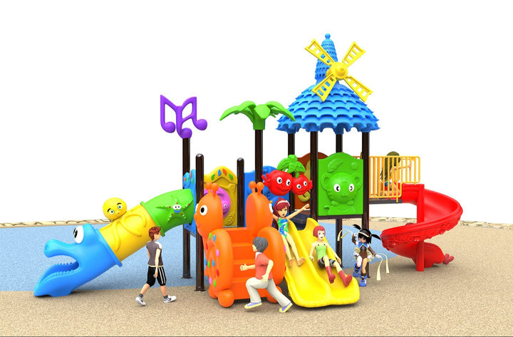 - مجموعة متنوعة من الأنشطة : تتضمن أرجوحات، وشرائح متعددة، وإطارات تسلق، وزخارف حيوانية مرحة لإشراك الأطفال وتشجيع التفاعل الاجتماعي.
