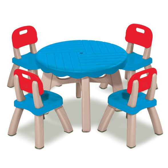 - طاولة وكراسي الفناء : تتضمن طاولة فناء بقطر 26 بوصة وأربعة كراسي ذات ظهر مرتفع، مثالية للعب الجماعي والوجبات.