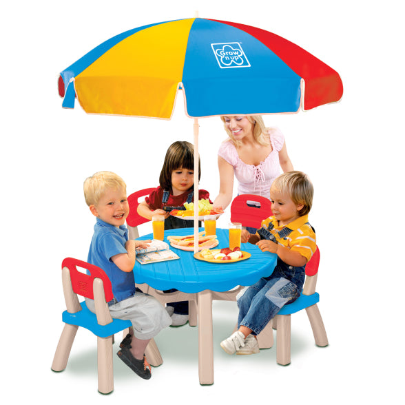 مجموعة الفناء الصيفية هي الإضافة المثالية لمنطقة اللعب الخارجية لطفلك، حيث توفر مساحة مريحة لتناول الوجبات أو الوجبات الخفيفة أو اللعب الخيالي. تم تصميم هذه المجموعة للأطفال من سن 3 سنوات فما فوق، وتتضمن طاولة فناء بقطر 26 بوصة مع أربعة كراسي مريحة ذات ظهر مرتفع، مما يضمن مساحة واسعة للأطفال للاستمتاع بوجباتهم أو المشاركة في اللعب الإبداعي مع الأصدقاء. تتميز المجموعة أيضًا بمظلة شمسية بقطر 42 بوصة لمزيد من الحماية من الشمس، مما يجعلها مثالية للمرح في الهواء الطلق المشمس والمظلل. مع القوام والتفاصيل الواقعية، تضيف مجموعة الفناء هذه لمسة من الواقعية والأناقة إلى أي فناء خلفي أو منطقة لعب.