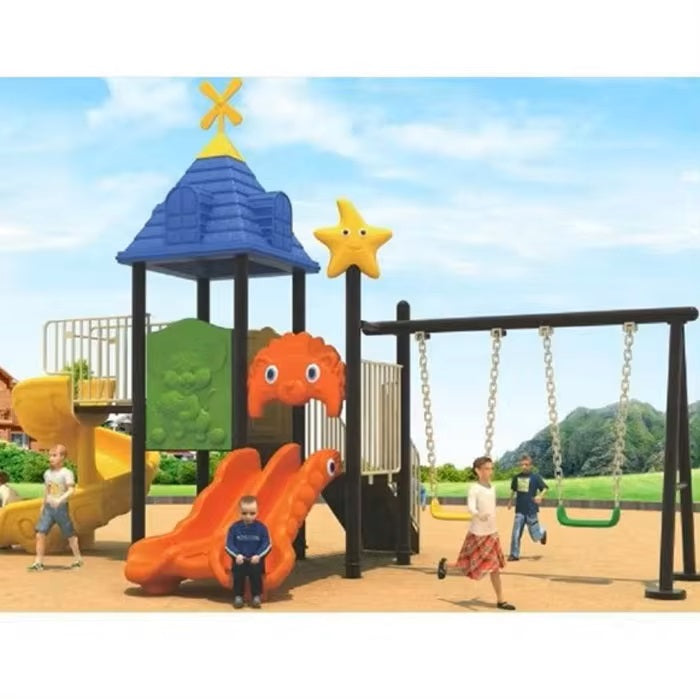 Transform any outdoor space into a lively play environment with our Outdoor Playground Equipment. Built from premium materials such as HDPE rotomolded and blow-molded plastic, PVC, PE, and galvanized steel, this playground set is designed for durability and safety. Perfect for children aged 2 to 12 years, it features a variety of activities such as swings, slides, climbing frames, and cheerful animal decorations, all intended to encourage active and imaginative play. Whether in schools, parks, residential communities, or commercial properties, this playground set offers hours of entertainment and is built to withstand the elements, meeting international safety standards to ensure peace of mind for parents.
