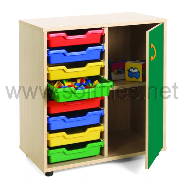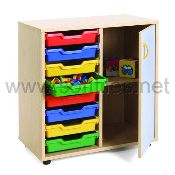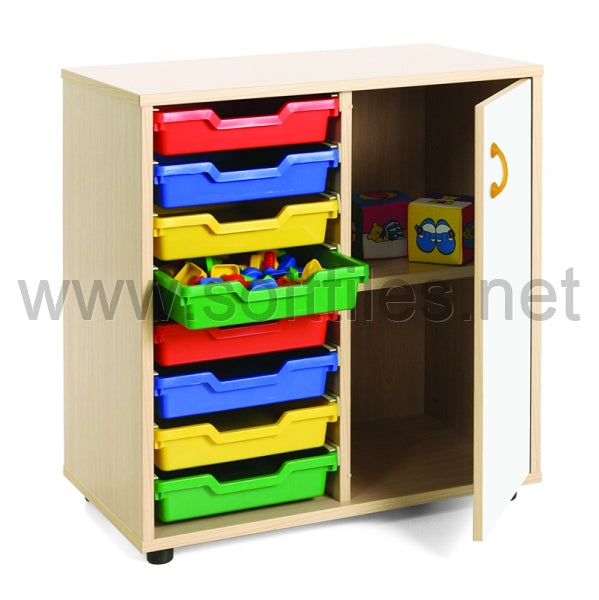 - Mobility: Equipped with tread wheels fitted with rubber pads, making it easy to move the storage unit around the classroom while protecting your floors from scratches.