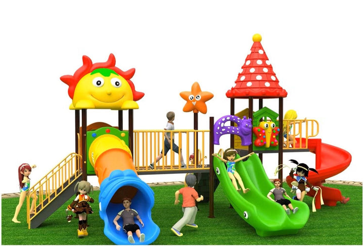 Transform any outdoor space into a lively play environment with our Outdoor Playground Equipment. Built from premium materials such as HDPE rotomolded and blow-molded plastic, PVC, PE, and galvanized steel, this playground set is designed for durability and safety. Perfect for children aged 2 to 12 years, it features a variety of activities such as swings, slides, climbing frames, and cheerful animal decorations, all intended to encourage active and imaginative play. Whether in schools, parks, residential communities, or commercial properties, this playground set offers hours of entertainment and is built to withstand the elements, meeting international safety standards to ensure peace of mind for parents.