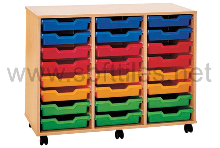 • Mobility: Equipped with tread wheels fitted with rubber pads, making it easy to move the storage unit around the classroom while protecting your floors from scratches.